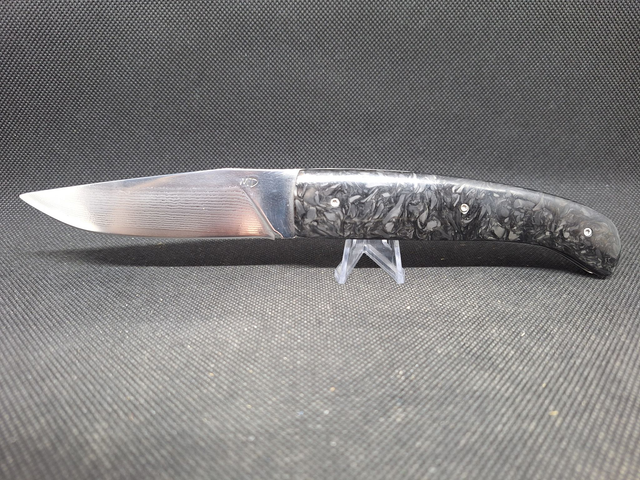 Lame en suminagashi vg10 manche en damas carbone, ressort en Z20C13, platine en Z40C13